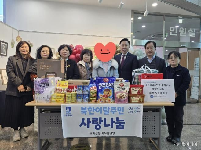 [리버럴미디어=공소리 기자] 권선구 호매실동 한국자유총연맹은 지난 17일, 연말연시를 맞아 관내 북한이탈주민에게 따뜻한 사랑 나눔 선물을 전달했다.