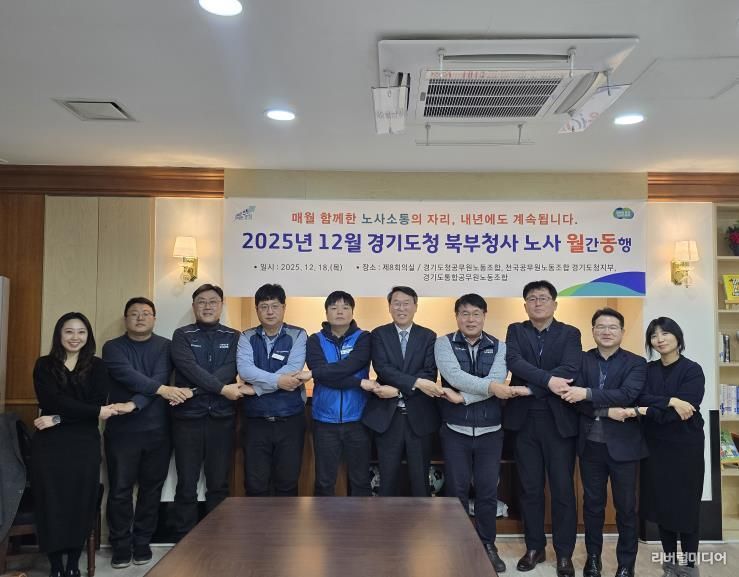 [리버럴미디어=공소리 기자] 경기도 북부청과 경기도청 3개 노동조합(경기도청공무원노동조합, 전국공무원노동조합 경기도청지부, 경기도통합공무원노동조합)은 ‘노사월동(노사 월간동행)’을 매월 정기적으로 운영해 오며 실질적인 조직문화 개선과 노사 간 신뢰 회복 기틀을 마련했다고 22일 밝혔다.