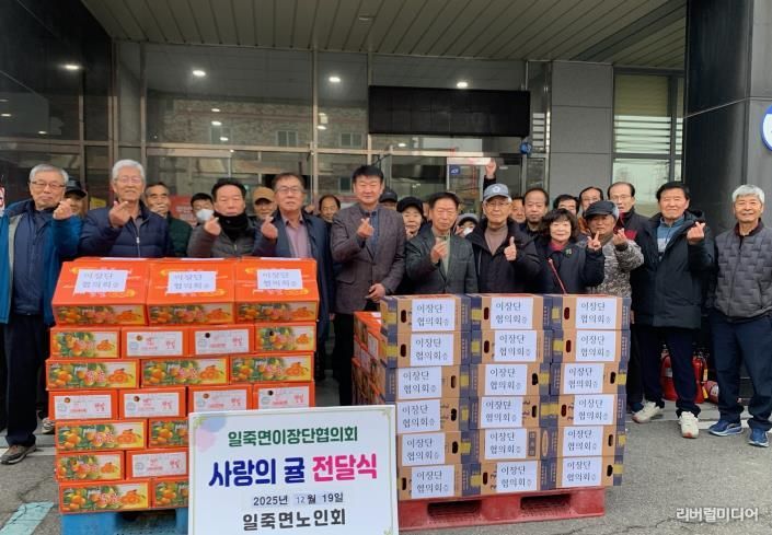[리버럴미디어=공소리 기자] 일죽면 이장단협의회는 지난 19일 동절기 경로당 이용 어르신의 안전한 생활을 위해 관내 46개소 경로당의 노후 소화기 전면 교체 및 귤 460kg을 지원했다.