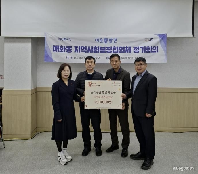 [리버럴미디어=공소리 기자] 금이공단 번영회와 하우스업이 연말연시를 맞아 매화동 취약계층을 위해 지난 12월 19일 매화동 행정복지센터를 찾아 후원금과 후원품을 전달하며 지역사회 나눔에 동참했다.