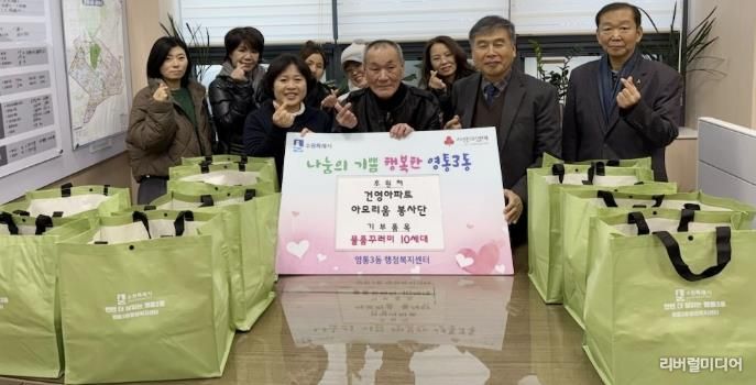 [리버럴미디어=공소리 기자] 지난 22일, 수원특례시 영통구 영통3동 건영2차아파트 아모리움 자원봉사단에서 관내 독거 어르신과 한부모가정을 대상으로 물품꾸러미와 성금을 지원하는 나눔 활동을 진행했다. 이번 나눔은 앞서 열린 협약식 이후 추진된 나눔 활동으로, 지역사회 내 취약계층을 위한 실질적인 지원이 이루어졌다.