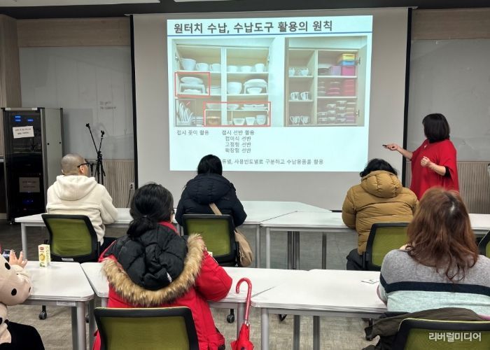 정리·수납이 특히 필요한 6가구를 우선 선정해 1차 이론 교육을 진행했으며, 이후 희망 가구 2곳을 대상으로는 주방 정리를 중심으로 한 현장 컨설팅과 실습 교육이 이어졌다.