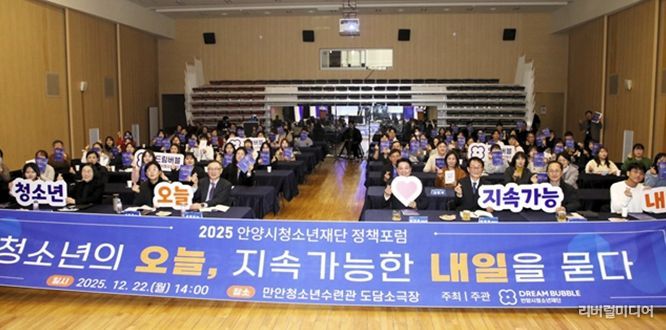 [리버럴미디어=공소리 기자] 안양시청소년재단은 지난 22일 만안청소년수련관 도담소극장에서 120명이 참석한 가운데 ‘청소년의 오늘, 지속가능한 내일을 묻다’를 주제로 2025년 안양시청소년재단 정책포럼을 개최했다고 23일 밝혔다.