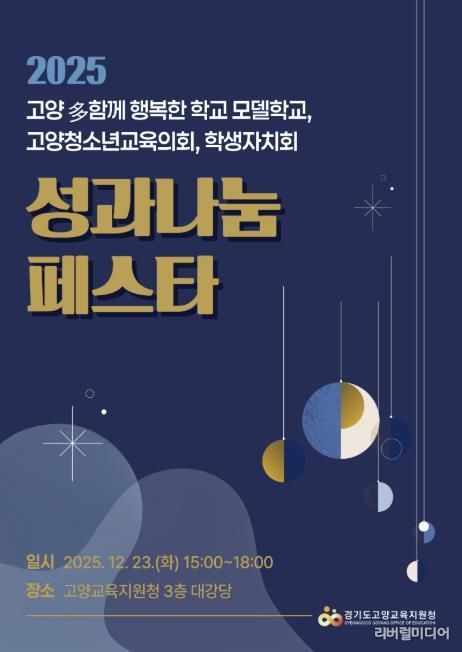 [리버럴미디어=공소리 기자] 고양교육지원청은 12월 23일 고양교육지원청 3층 대강당에서 ‘2025 고양 다함께 행복한 학교’모델학교 및 고양청소년교육의회·학생자치회 성과나눔 페스타를 개최했다.