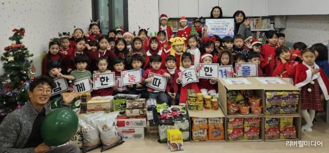 [리버럴미디어=공소리 기자] 시립힐스테이트푸르지오수원 어린이집은 지난 23일, 수원시 팔달구 매교동에 연말을 맞아 관내 어려운 이웃들에게 원생들이 십시일반 모은 식료품 꾸러미를 후원했다.