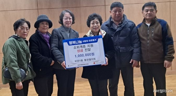 [리버럴미디어=공소리 기자] 평택시 비전1동 통장협의회는 지난 17일, 연말을 맞아 관내 어려운 이웃을 위해 써달라며 이웃돕기 성금 100만 원을 비전1동 행정복지센터에 기부했다.