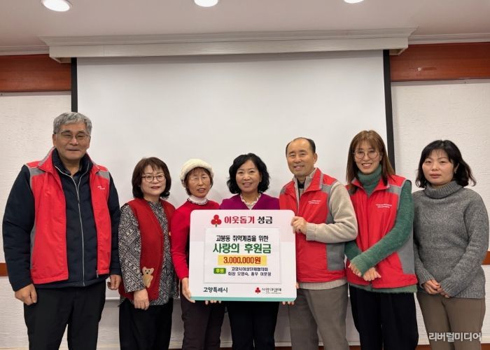 [리버럴미디어=공소리 기자] 고양특례시 일산동구 고봉동은 지난 23일, 고양시여성단체협의회 오영숙 회장과 이문정 총무가 고봉동 취약계층을 위해 300만 원을 기탁했다고 밝혔다.