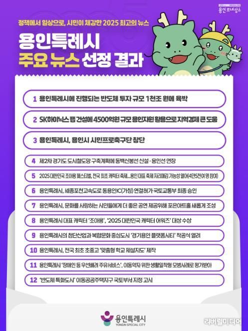 [리버럴미디어=공소리 기자] 2025년 용인특례시를 빛낸 최고의 뉴스로 '반도체 투자규모 1000조 원에 육박'이 뽑혔다.