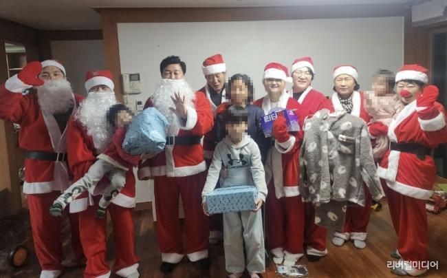 산타들은 크리스마스 케이크와 간식 등 정성스럽게 준비한 선물을 전달하며, 단순한 물품 지원을 넘어 따뜻한 추억과 위로의 시간을 함께 나눴다.