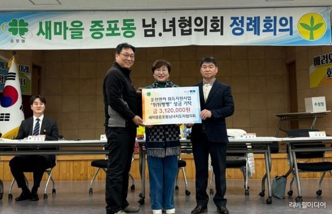 [리버럴미디어=공소리 기자] 이천시 증포동 새마을남녀협의회는 12월 26일 증포동 저소득 사회초년생을 위한 운전면허 취득(‘뛰뛰빵빵’) 지원을 위해 성금 312만 원을 증포동행정복지센터에 기탁했다.