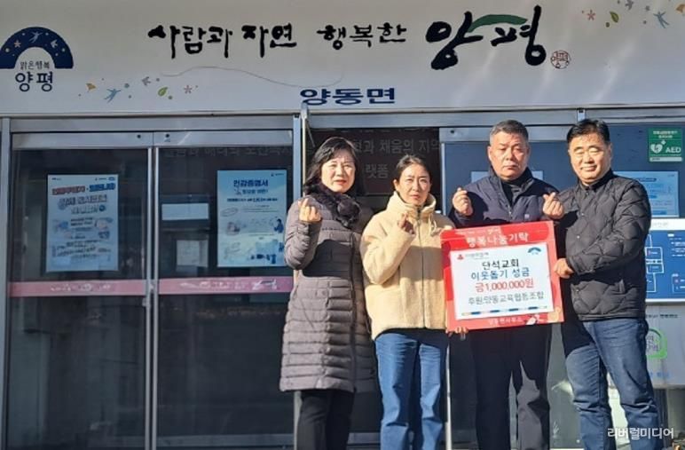 [리버럴미디어=공소리 기자] 양평군 양동면은 추운 겨울을 맞아 지역사회의 이웃사랑 실천을 위해 양동면 내 여러 단체가 기부에 동참하고 있다고 밝혔다. 양평부추영농조합법인, 단석교회, 양평중기협회 등 지역 단체들은 어려운 이웃을 위해 사용해 달라며 기부금을 전달했다.