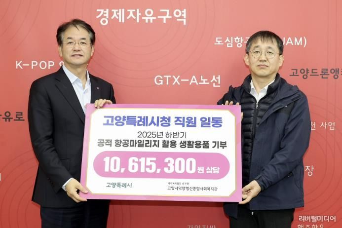 [리버럴미디어=공소리 기자] 고양특례시는 연말을 맞아 지난 30일 이동환 고양시장과 김진우 고양시덕양행신종합사회복지관장이 참석한 가운데 열린시장실에서 ‘2025년 하반기 공적 항공마일리지 활용 기부물품 전달식’을 가졌다고 밝혔다.