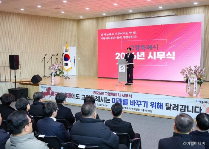 [리버럴미디어=공소리 기자] 고양특례시는 2일, 고양시청 백석별관 대강당에서 새해 시무식을 열고 2026년 병오년의 힘찬 출발을 다짐했다.