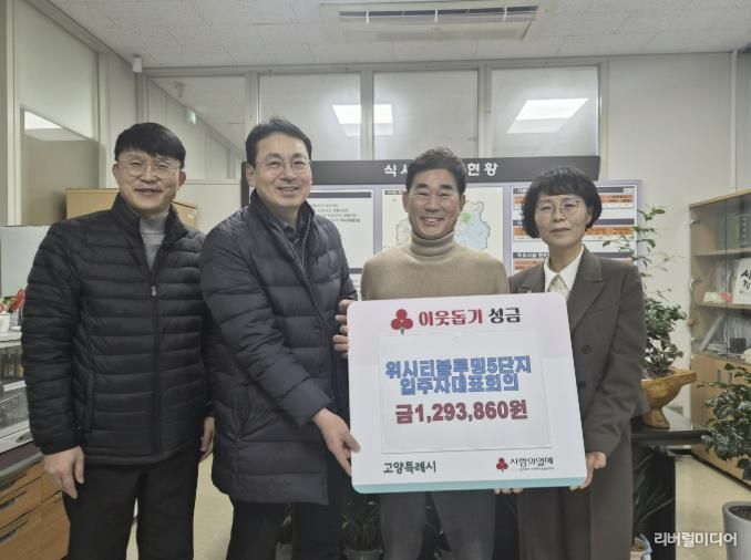 [리버럴미디어=공소리 기자] 고양특례시 일산동구 식사동은 지난 9일 위시티블루밍5단지 입주자대표회에서 이웃돕기 성금을 기탁했다고 밝혔다.
