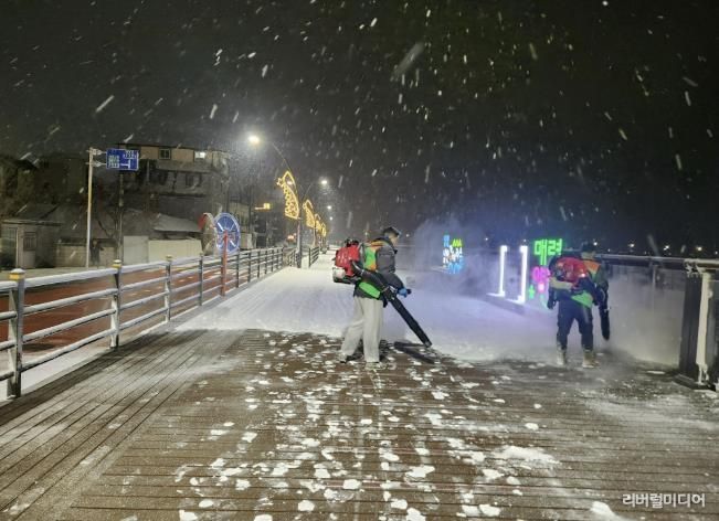 이번 작업은 군과의 협력을 통해 제설장비인 브로워를 활용해 효율적으로 추진됐으며, 자율방재단은 추가 강설에 대비해 24시간 비상근무 체계를 유지하며 주민 민원에도 신속히 대응하고 있다.