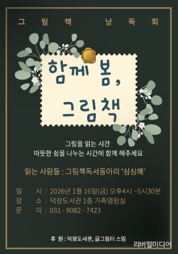 [리버럴미디어=공소리 기자] 양주시 덕정도서관은 오는 1월 16일 16시부터 17시 30분까지, 도서관 1층 가족열람실에서 그림책 낭독회 '함께 봄, 그림책'을 운영한다.
