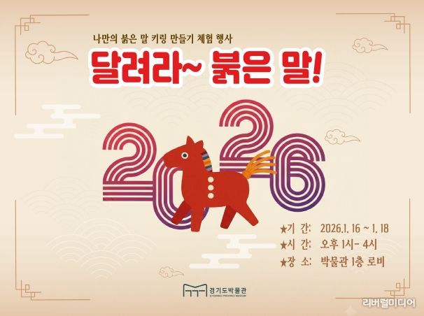 [리버럴미디어=공소리 기자] 경기문화재단 경기도박물관(관장직무대행 박본수)은 병오년 새해를 맞아 관람객을 위한 체험형 교육행사 〈달려라~ 붉은 말!〉을 1월 16일부터 18일까지 3일간 박물관 로비에서 운영한다.