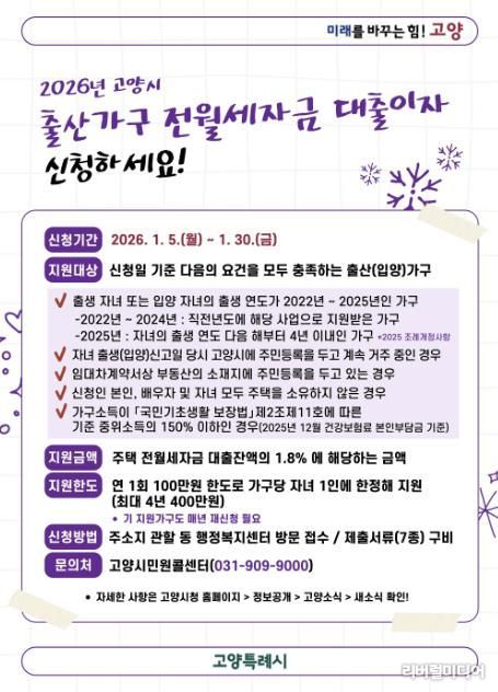 [리버럴미디어=공소리 기자] 고양특례시가 ‘아이 키우기 좋은 도시’를 목표로 올해 출산·양육 지원을 더욱 강화한다.