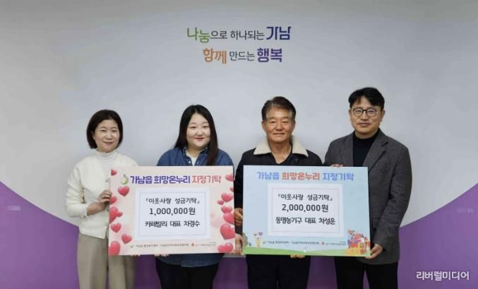 [리버럴미디어=공소리 기자] 여주시 가남읍 행정복지센터은 지난 15일, 관내 사업체인 동명농기구와 카페 발리에서 지역 내 취약계층을 위한 이웃돕기 성금을 기탁했다고 밝혔다.