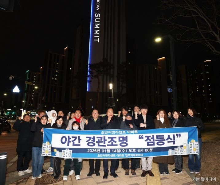 이번 점등식은 기존 옥탑부 조명을 보완해 새롭게 설치한 ‘라인 경관조명’의 본격적인 가동을 알리는 행사로, 아파트 외벽을 따라 조성된 경관조명이 점등되며 단지 전반의 야간 경관이 한층 밝고 쾌적하게 개선됐다.