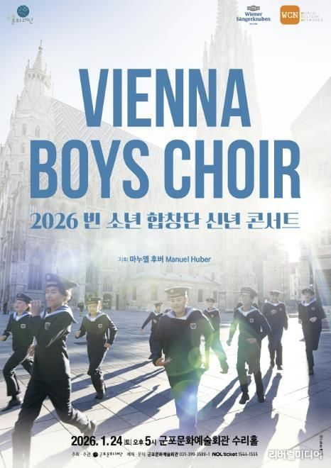 [리버럴미디어=공소리 기자] 군포문화예술회관은 2026년 새해를 여는 기획공연으로, 500년의 역사를 지닌 세계 최고의 소년합창단 “빈 소년 합창단(Wiener Sängerknaben)”의 내한공연 '2026 빈 소년 합창단 신년 콘서트'를 오는 1월 24일(토) 오후 5시, 수리홀에서 개최한다.