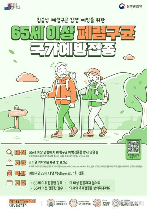 대상은 1961년 12월 31일 이전 출생자 중 폐렴구균 23가 다당 백신(PPSV23)을 맞지 않은 시민이다. 폐렴구균은 폐렴·뇌수막염 등 침습성 감염질환의 주요 원인으로, 고령층 발생 시 치명률이 60~80%까지 높아 접종이 중요하다.
