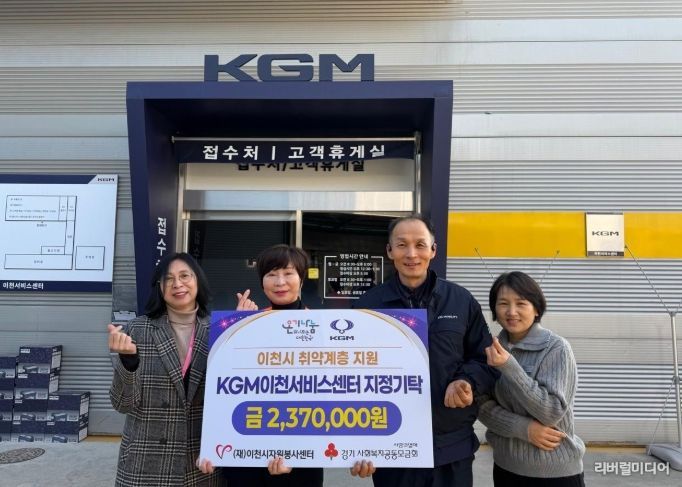 이에 이미선 이천시자원봉사센터 센터장은 “전문 재능기부에 이어 소중한 성금까지 기탁해 주신 KGM이천서비스센터에 깊이 감사드린다”라며 “기업의 전문성과 노력이 교육, 나눔, 자원봉사 문화 확산으로 이어지는 건강한 선순환의 모범 사례”라고 전했다.