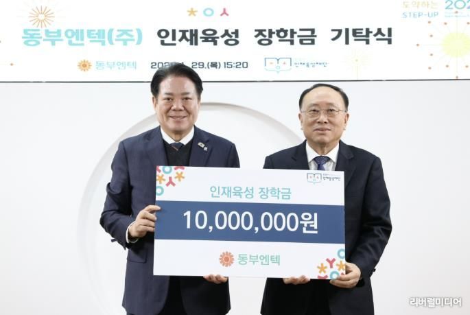 동부엔텍은 지난 2023년과 2024년에 이어 올해에도 장학금을 기탁하며, 이번 기탁까지 총 세 차례에 걸쳐 재단과 인연을 이어오고 있다. 올해 전달된 장학금 1천만원은 재단의 희망장학금으로 활용되어, 경제적 어려움 속에서도 학업에 매진하는 관내 학생들을 지원하는데 쓰일 예정이다.
