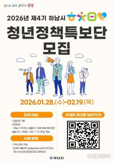 [리버럴미디어=공소리 기자] 하남시는 청년의 시선으로 시정을 함께 만들어갈 ‘제4기 청년정책특보단’을 오는 2월 19일까지 공개 모집한다고 밝혔다.