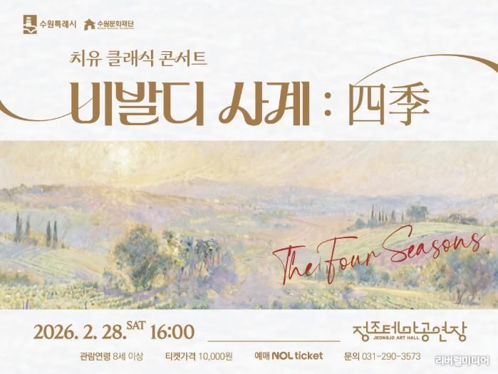 수원문화재단은 오는 28일 토요일 오후 4시 정조테마공연장에서 ‘치유 클래식 콘서트 '비발디 사계: 四季'’를 개최한다.