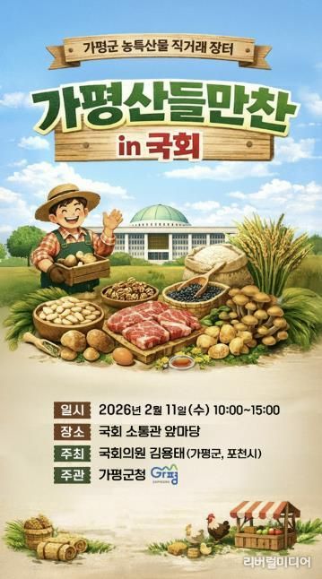 [리버럴미디어=공소리 기자] 설 명절을 앞두고 가평군의 우수 농특산물을 한자리에서 만날 수 있는 직거래 장터가 국회에서 열린다. 소비자와 생산자를 직접 연결하는 이번 행사는 도시민들에게 가평 농산물의 우수성과 가평의 관광자원까지 함께 알리는 자리가 될 전망이다.