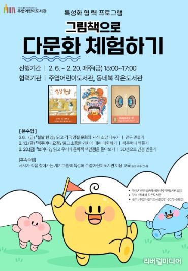 [리버럴미디어=공소리 기자] 고양특례시 주엽어린이도서관은 겨울방학을 맞아 다문화 초등학생을 대상으로 특성화 협력 프로그램 ‘그림책으로 다문화 체험하기’를 운영한다.
