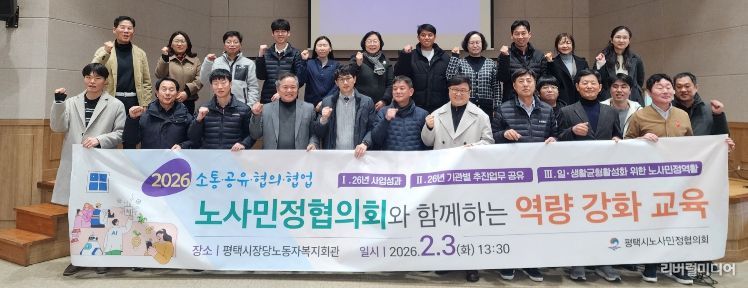 [리버럴미디어=공소리 기자] 평택시노사민정협의회는 지난 3일 분과위원회 및 실무협의회 위원을 대상으로 '2026년 노사민정협의회 통합회의 및 일·생활 균형을 위한 역량 강화 교육'을 평택시 장당노동자복지회관 대회의실에서 개최했다.
