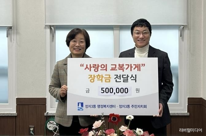 이번 성금은 2025년 한 해 동안 주민자치회가 운영한 ‘사랑의 교복가게’ 운영 수익금으로 조성됐으며, 관내 저소득 가정 학생 1명에게 장학금으로 전달될 예정이다.