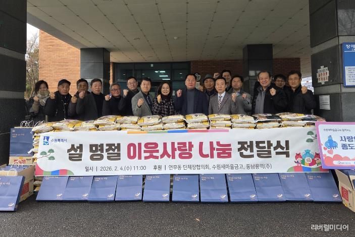 [리버럴미디어=공소리 기자] 수원시 장안구 연무동 행정복지센터는 지난 4일, 설 명절을 맞아 관내 어려운 이웃을 위한 나눔 전달식을 개최했다.