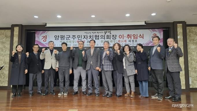 [리버럴미디어=공소리 기자] 양평군 주민자치 발전을 이끌어 온 제13대와 새롭게 출범하는 제14대 주민자치협의회장 이·취임식이 지난 4일 양평군 평생학습센터에서 개최됐다.