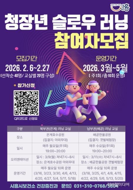 이형정 시흥시보건소장은 “슬로우 러닝은 운동 초보자도 부담 없이 참여할 수 있는 신체활동 프로그램”이라며 “시민들이 규칙적인 운동을 통해 건강한 일상을 만들어 가길 기대한다”라고 말했다.