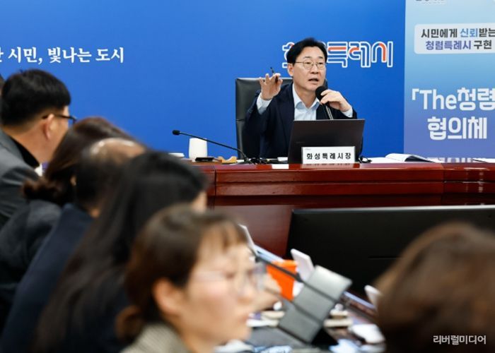 [리버럴미디어=공소리 기자] 화성특례시는 9일 시청 상황실에서 정명근 시장을 단장으로 실국장단 및 구청장 등 4급 이상 고위직 공무원으로 구성된 '더 청렴' 협의체 회의를 개최했다.