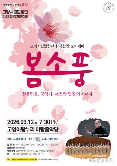 [리버럴미디어=공소리 기자] 고양특례시를 대표하는 문화사절단인 고양시립합창단이 오는 3월 12일 저녁 7시 30분, 고양아람누리 아람음악당에서 제83회 정기연주회 ‘한국합창 오디세이: 봄소풍’을 개최한다.