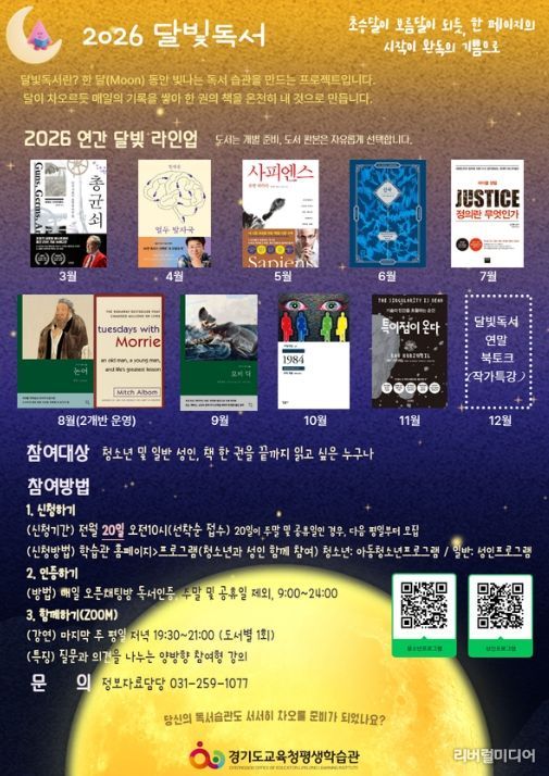 [리버럴미디어=공소리 기자] 경기도교육청평생학습관(관장 류영신)이 청소년과 성인이 함께 참여하는 독서 프로그램 ‘달빛독서’를 운영한다.