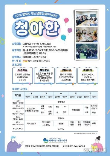 청아한 관계자는 “청아한은 배움과 체험, 돌봄이 조화를 이루는 프로그램으로 청소년들이 안전한 환경에서 다양한 경험을 할 수 있도록 지원하고 있다”라며 “2026년을 함께할 청소년들의 많은 관심과 참여를 바란다”라고 말했다.