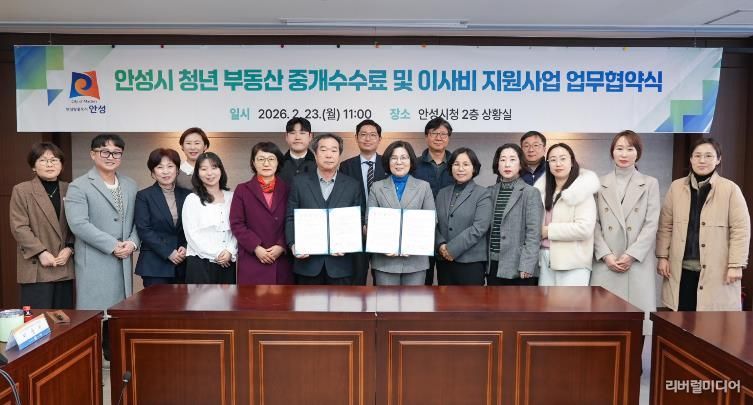 [리버럴미디어=공소리 기자] 안성시는 2월 23일 오전 11시 안성시청 2층 상황실에서 대한공인중개사협회 안성시지회와 '안성시 청년 부동산 중개수수료 및 이사비 지원사업' 변경 협약을 체결했다고 밝혔다.