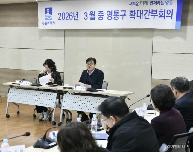 [리버럴미디어=공소리 기자] 수원특례시 영통구는 지난 24일, 구청 상황실에서 ‘2026년 3월 확대간부회의’를 개최하고, 구정 주요 현안을 집중 점검했다.