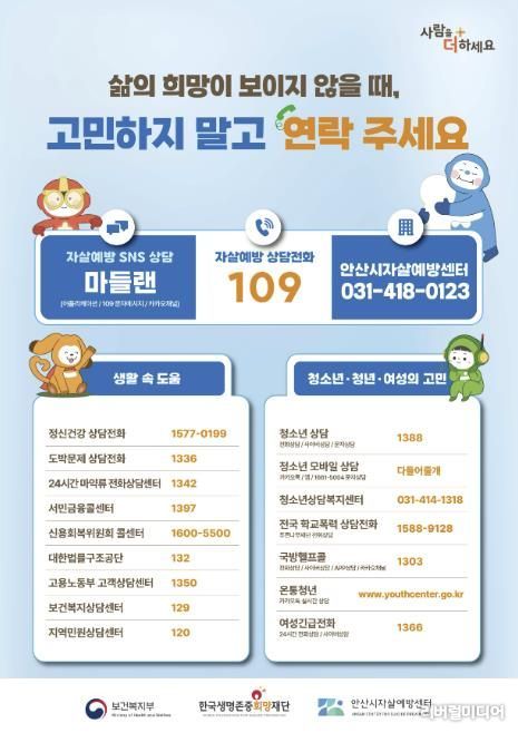 이미경 상록수보건소장은 “위기 상황에서 도움을 받을 방법을 알고, 망설임 없이 도움을 요청할 수 있는 환경이 중요하다”며 “시민의 생명을 지키는 지역사회 안전망을 더욱 촘촘히 구축하겠다”고 말했다.