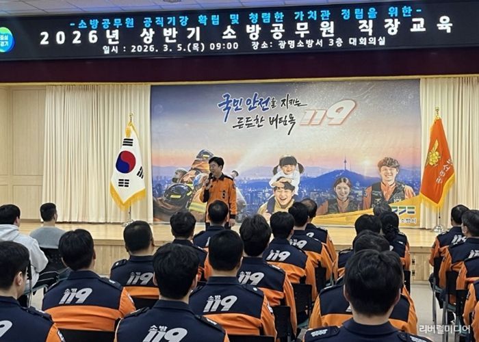 [리버럴미디어=공소리 기자] 광명소방서는 5일 본서 3층 대회의실에서 전 직원을 대상으로 2026년 상반기 소방공무원 직장교육을 실시했다.