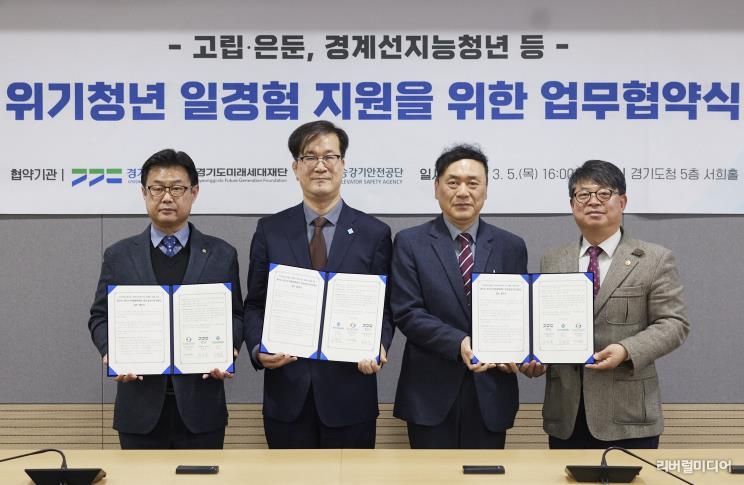 [리버럴미디어=공소리 기자] 경기도와 경기도미래세대재단, 한국승강기안전공단 경인지역본부는 5일 경기도청 서희홀에서 ‘위기청년 일경험 지원을 위한 업무협약’을 체결했다.