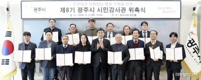 제8기 시민감사관은 총 20명으로, 광주시 거주 시민으로 구성된 명예감사관 5명과 전문 자격 및 실무 경험을 갖춘 전문감사관 15명으로 구성됐다. 임기는 2029년 3월까지 3년이다.