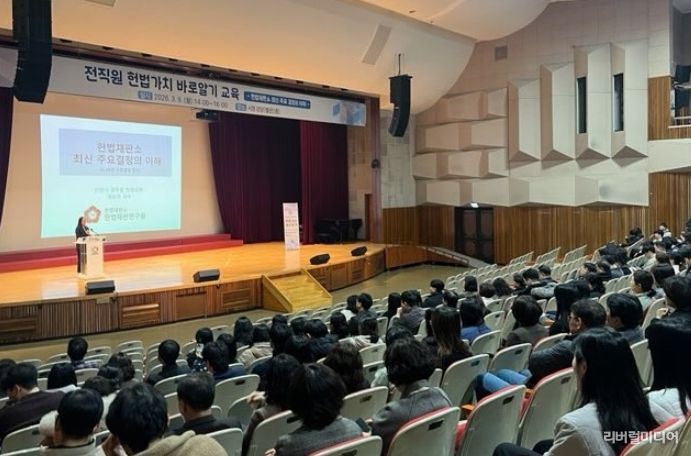 [리버럴미디어=공소리 기자] 안양시는 9일 오후 2시 소속 공무원들을 대상으로 예승연 헌법재판소 헌법재판연구원 교수를 초빙해 ‘헌법가치 바로 알기’ 교육을 실시했다.