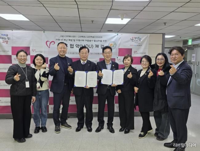 [리버럴미디어=공소리 기자] 고양시자원봉사센터가 지난 6일 고양특례시 강원특별자치도민회와 ‘지역 내 재난 예방 및 지역사회 자원봉사 활성화’를 위한 업무협약을 체결했다.