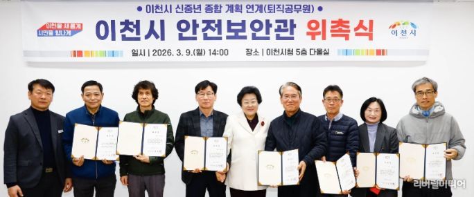 [리버럴미디어=공소리 기자] 이천시는 지난 9일 ‘이천시 안전보안관 위촉식’을 열고 신규 안전보안관 7명에게 위촉장을 수여했다.